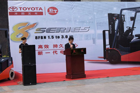 2011年8月19日丰田8系列电瓶车新品首发巡演的全国活动第八站,来到了安徽合肥。正值安徽省巢湖市一分为三,划入合肥市的大调整之时,未来的大合肥规划将令其经济发展势头更迅猛。来自合肥,芜湖,蚌埠的丰田叉车客户们,相聚在合肥经济技术开发区源牌国际大酒店,共同见证丰田8系列电瓶车在安徽省的首发。