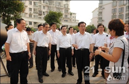 金秋来临,龙城大地山更青,水更绿,工厂生产忙碌,社区安宁和谐。9月16日,中共中央政治局常委、中央纪委书记贺国强来到柳州就进一步学习贯彻落实胡锦涛总书记“七一”重要讲话精神,加快转变经济发展方式,保持经济平稳较快发展,以及加强党风廉政建设等进行调研。一到柳州,贺国强一行就来到广西柳工集团。站在柳工的世界布局版图前,贺国强关心地问,“现在柳工在全球总装有几个点 ?有些什么目标 ?”企业负责人曾光安回答,“目前装配和构件制造是在印度。五年内我们的制造业能覆盖到全球。我们的目标是在2012年主营收入从去年的全球行业排名20跻身到第15名,至2020年跻身前5名。”对此,贺国强表示肯定。