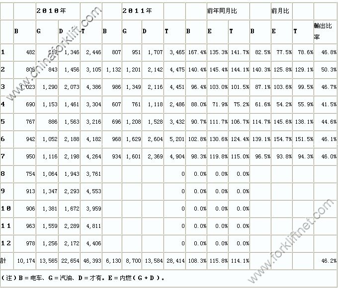 2010年和2011年日本叉车销售量(针对出口)