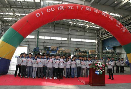 2011年9月30日,斗山工程机械(中国)有限公司全体员工齐聚挖掘机厂房,举行公司成立17周年纪念早会。丁海益总经理、各位常务级领导、工会高明才主席以及各部门长、全体员工参加了本次早会。