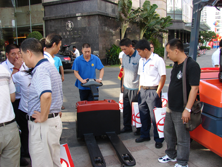海南丰田叉车2004年开始销售丰田品牌叉车,是海南惟一一家丰田授权经销商,集整机销售、配件销售、维修服务于一体的物流设备运营商。来自海南丰田叉车的黄武总经理致发言词,感谢新老客户对丰田叉车长久以来的支持。来自丰田产业车辆营业部王伟经理、海南区域担当翁崴也先后作了发言,简单介绍Z系列内燃叉车、8系列电瓶叉车的卓越品质之后,客户和来宾对两款新车都有了进一步的了解和浓厚兴趣。在实车驾驶竞技比赛、新车试驾环节中,有叉车驾驶经验的客户迫不及待的一展身手。之后,有两家客户当场签订购车合同。相信随着新型叉车的推出丰田叉车在海南的销售会出现更为喜人的发展。此次活动报道还吸引了当地媒体,海南电视台等前来采访。