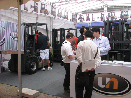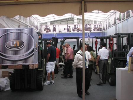 尤恩叉车此次以2-3吨的平衡重式内燃及电动叉车为主打产品,其典雅的外观、灵活的操作吸引了大批的国外客商驻足参观。
