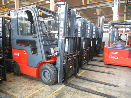 9月28日,48台侧移调距叉都已配装好在合力2t叉车上,整装待发,即将随合力叉车一起发往波兰客户手中,在合力进出口公司的长期支持下,安庆厂纸卷夹、推拉器、软包夹、侧移器、侧移调距叉等产品已陆续出口到国外,并受到国外用户的一致好评。
