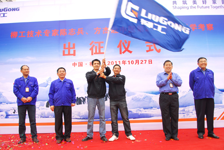 在刚刚结束的第十一届中国(北京)国际工程机械展会上,柳工发布了新的服务品牌,主题是“柳工服务 至诚至极”。10月27日,柳工欢送两位优秀技术服务专家,光荣出征南极,将把柳工服务品牌完美呈现于世界之“极”。