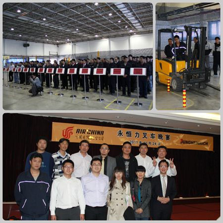 2011年10月24日,在北京空港举行了中国国际航空有限公司航材部首届叉车技能大赛。参赛的有来自北京、深圳、武汉、贵阳、重庆、成都、杭州、天津、呼和浩特、上海、广州等基地的代表队的超过60位叉车高手。永恒力北京区域的同事作为助理裁判员参与了整个竞赛活动,为参赛选手介绍了叉车的操作和技术性能,和国航一线的叉车司机们进行了面对面的互动和交流。