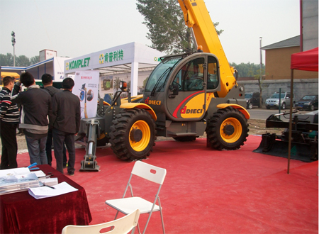 10月20日上午10点钟左右,有一个大约50来岁的中年男士兴致勃勃来到我们的展区前,急切的向我们了解帝尔奇产品是否能在开矿前使用,他高兴地说:“你好!我姓李,是朋友在这里拿到光盘和资料给我看的,我一直在寻找这样高端的设备,终于找到了,麻烦你给我好好讲讲吧。”我就慢慢地地给他介绍了帝尔奇多功能伸缩臂叉装车性能与用途,该产品非常适用于开矿前期的作业。