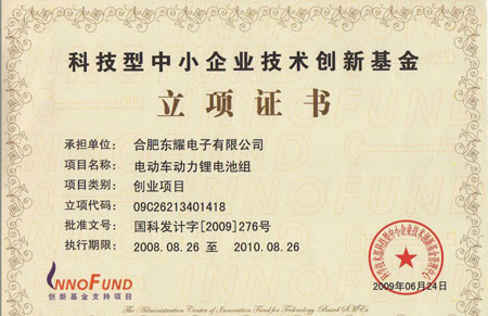 东耀电子承担的科技部中小企业技术创新基金无偿资助项目——电动车动力锂电池组,日前顺利结题。