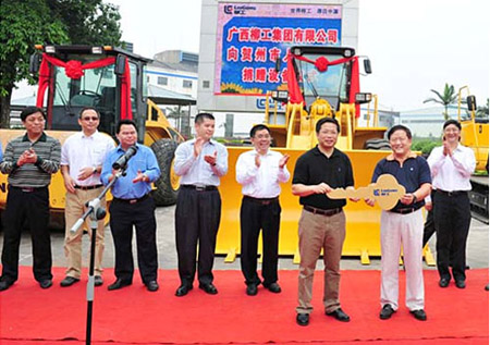 贺州市近年来着力推进工业化、城镇化、农业企业化,经济发展和社会各项事业都取得了长足的进步。贺州市作为承接粤港澳及大陆沿海经济辐射与产业转移的前沿地带,以其便捷的交通条件、优惠的投资政策、高效的管理服务,已成为海内外客商投资兴业的热土。一直以来,我公司都时刻关注国家建设,积极投身社会公益事业。为进一步推动贺州市的经济发展,支持贺州市城市基础设施建设,民生工程建设,以及应急救援事业,公司决定向贺州市政府捐赠ZL50CN装载机、CLG915D挖掘机、CLG614压路机各1台,为贺州市发展尽一份力,双方还将进一步加强交流与合作,为广西的社会经济发展作出更大的贡献。