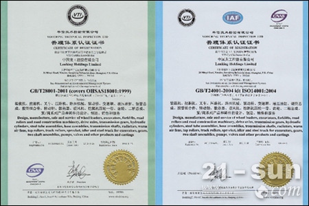 经龙工各子公司近一年的辛勤付出和持续改进,中国龙工控股有限公司及十二个制造子公司,按照《GB/T24001-2004环境管理体系要求》和《GB/T28001职业健康安全管理体系要求》建立的环境管理体系和职业健康安全管理体系于2011年9月全面完成现场认证审核,经国家认监委批准,已于2011年9月26日取得认证证书(详见图片)。