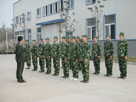 公司高度重视这次军训,由武警部队转业军人担任教官。军训主要分两部分,第一部分是训练队列、正步、踏步、站军姿;第二部分是练习齐步走、跑步走。在教官的指挥下,新员工们在寒风中一遍又一遍地训练着、坚持着,随着时间的推移他们的步调越来越一致,队伍也越来越整齐,体现出严格的组织性、纪律性和团队精神,雄浑、嘹亮的口号喊出了新员工的气势和力量。