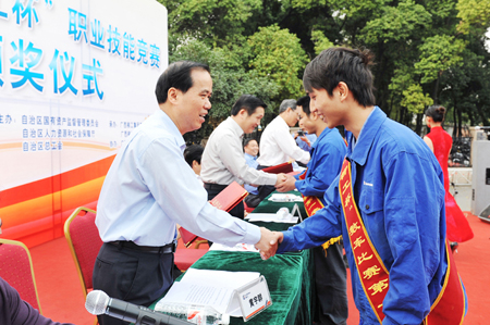 自治区国资委主任肖文荪在闭幕仪式上指出,加强技能人才培养,建设一支规模宏大、具有超高技艺和精湛技能的高技能人才队伍,是企业科学发展、跨越发展和实现富民强桂宏伟目标的重要保证。此次竞赛全面展示了广西国有企业职工队伍精湛的技艺水平和良好的精神风貌,通过这次竞赛,涌现出一批重要工种的高技能人才,进一步激发了企业广大职工学习技术的热情,有力促进广西国有企业技能人才的培养和技术创新。“希望各企业及其职工,以这次大赛为新的起点,深入贯彻落实自治区提出的‘人才强企’战略,加强高技能人才队伍建设,充分发挥高技能人才的骨干带头作用,推动我区的国有企业又好又快发展。”