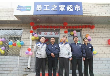 仪式上,首先由高明才主席向大家介绍了超市运行情况,高主席表示建立超市的宗旨就是方便员工服务员工,希望大家对超市的运营进行监督,以督促其不断完善。随后,由丁总致辞,丁总指出超市的建成是给大家提供的一项福利,希望超市能够为员工提供日臻完美的服务,发展成大家都满意的超市。