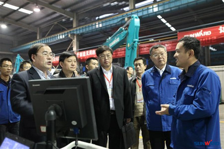 汇报会结束后,全体专家在集团董事长何老师带领下,实地考察了公司研究生创新培养办公及实践场所,并与研究生们亲切交谈,深入了解研究生在基础理论学习和实践操作方面的心得体会,并仔细查阅了基地评估相关材料,参观了基地展厅建设,观看了混合动力挖掘机、智能电控挖掘机、工程机械控制器、CAE结构分析等科研成果展示。与会专家对山河智能产学研人才培养工作予以了高度肯定,并勉励全体基地研究生把握难得的机遇,充分利用山河智能良好平台,注重自身素质培养与专业技能提升,为建设“四化两型”社会贡献自己的才智。