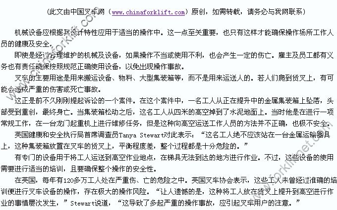 叉车设备应投入正确的操作环境