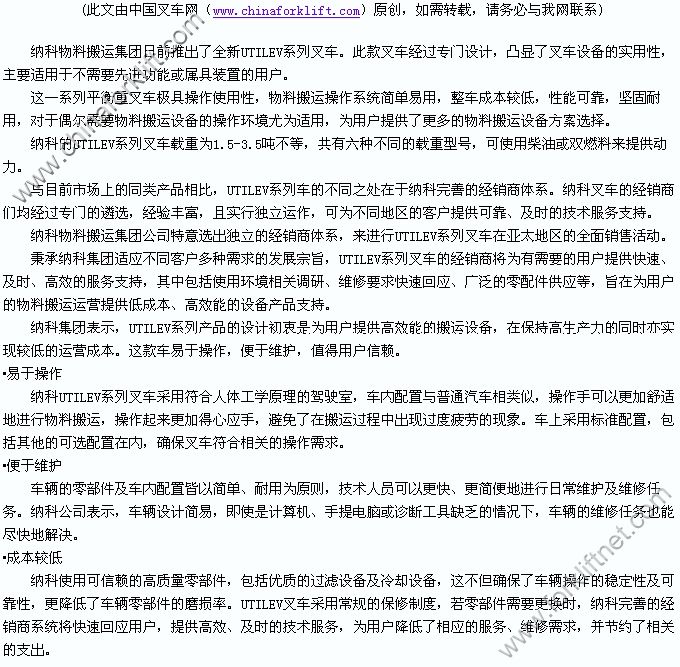 关于纳科 纳科是一个有着三大主要业务的营业控股公司:叉车、家用器皿与煤矿。在2007年,其总财政收入为36亿,净收入为0.89亿。纳科股票在纽约证券交易所上市,股票代号为NC。纳科的总体策略为通过执行为其设计要达到的长期利益增长点的倡议来提升股东的价值。 这些倡议的目标为驱动每一个子公司在2012年前达到其长期的财政目标,或随着计划的成熟更早地实现。 纳科的长期目标反映在四个指导原则上: •确保高专业的管理团队; •达到引领行业的操作效益; •创建引领行业的市场地位; •创造持续的竞争优势地位。