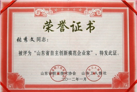 1月12日,在山东省总工会召开的2011年度第四届“创新榜样”新闻发布会上,山推股份公司董事长张秀文被评为“山东省自主创新模范企业家”,山推股份公司被授予“山东省自主创新模范企业”荣誉称号。山东省总工会副主席赵立群出席会议并讲话。