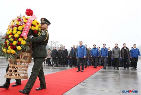 16日清晨,冒着凛冽的寒风细雨,何清华董事长率领全体与会人员向毛泽东主席铜像敬献花篮。
