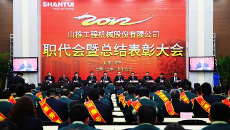 张秀文董事长围绕以下几个方面作了深刻阐述并提出了三点要求。一、锐意求变,激情干事,重点工作取得五大成绩。2011年,我们在应对经济形势突变的市场环境中激情干事,锐意求变,整体工作实现平稳健康发展,总结一年工作,可以用“五大成绩”来概括。一是坚定不移推进产业结构调整,多元化发展取得新成绩;二是同步提升研发软硬实力,科技创新取得新成绩;三是大力拓展海外市场,国际化经营取得新成绩。四是坚持实施人才强企战略,人才引进工作取得新成绩。五是围绕中心,务求实效,企业党建和企业文化建设取得新成绩。二、面临的挑战和机遇。我们既要深化对企业内外部形势的分析判断,充分估计困难和挑战,强化责任感和使命感,以饱满的精神状态和扎实的工作作风砥砺奋进。又要看到我们的有利条件和发展优势,进一步坚定信心、鼓足干劲,齐心协力推进山推实现新跨越。讲话中张总深刻分析了公司当前面临的挑战和机遇,指出了山推未来的发展方向。三、勇担责任,砥砺奋进,力争实现六大再突破。2012年,为了成功应对金融危机的演变和后续影响,对公司的生产经营可能产生的冲击,顺利实现新一轮跨越发展,我们必须抢抓机遇、正视困难、迎接挑战,切实增强责任意识、危机意识、创新意识,砥砺奋进,力争实现六大突破。一是在国内外市场开发上实现再突破;二是在提升科技创新能力上实现再突破。三是在加快新产业发展上实现再突破;四是在提升管理效能上实现再突破;五是在人力资源开发上实现再突破;六、在党群工作及企业文化建设上实现再突破。