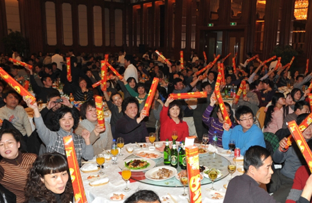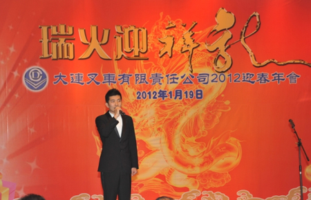 2012年1月19日,大连叉车有限责任公司迎春年会在大连富丽华大酒店二楼多功能厅隆重召开,公司全体员工800余人参加了大会。年会现场气氛祥和热烈、其乐融融,随着工会主席宣布开宴,一个个“福字”从天而降,落在每位员工的手中,全体员工边享受五星级酒店提供的美味佳肴,边观赏员工自编自演的文艺节目,各种精彩纷呈的游戏及互动环节更是让台下热血沸腾,欢呼声及掌声不断,一个又一个幸运儿伴随着大屏幕的幸运抽奖产生,他们兴高采烈的上台领奖,接受公司的厚礼,分享龙年的幸运和喜悦。