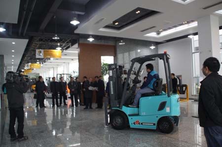 随后,在展厅参观我们的精品叉车,吉鑫祥专业人员现场展示了叉车的性能与特点,市领导对我们的产品占领全球市场非常的有信心。