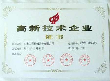 近日,山推股份公司收到了由山东省科学技术厅、山东省财政厅、山东省国家税务局、山东省地方税务局联合颁发的《关于济南圣泉集团股份有限公司等504家企业通过高新技术企业复审的通知》(鲁科高字[2012]19号),认定公司通过高新技术企业复审,资格有效期3年。企业所得税优惠期为2011年1月1日至2013年12月31日,证书编号为:GF201137000064。