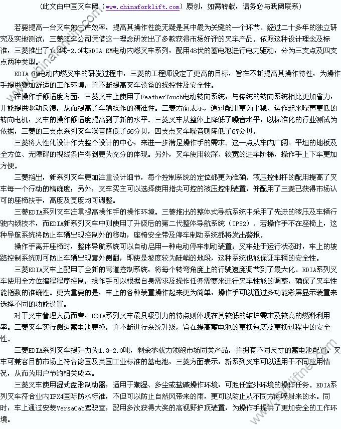三菱电动叉车提高车辆可操作性