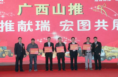 2月25日,山推产品广西大型体验会在广西山推事业园区隆重举行。公司副总经理王文超,广西业盛集团董事长叶凤琦及国内营销事业部相关负责人等出席,来自广西地区的300多名用户共同体验了山推产品促销活动。