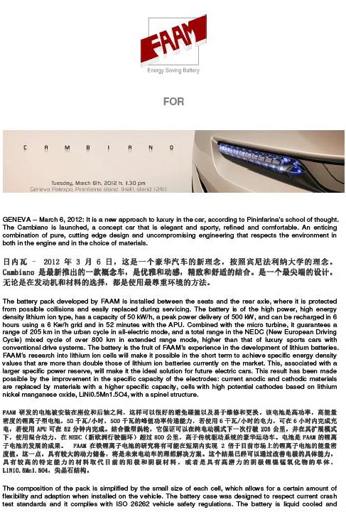CAMBIANO新概念车—FAAM电池技术