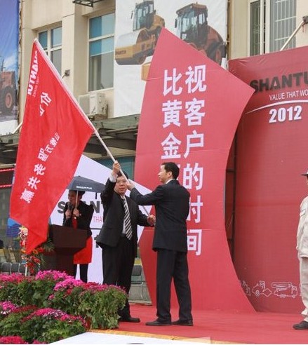 3月15日,山推“万里服务走基层”营销主题活动启动仪式在安徽合肥成功举行。仪式上,山推国内营销部服务支持部郑新光将象征山推服务理念的大旗授予安徽山推张德勇总经理,安徽山推全体服务人员高昂宣誓,山推“万里服务走基层”服务车浩浩荡荡开赴一线施工现场。