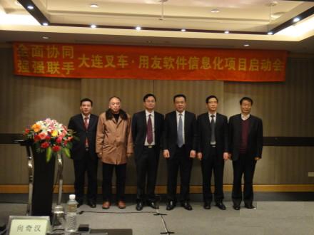 2012年3月15日,在大连远洋洲际酒店,大连叉车有限责任公司与用友软件牵手启动大连叉车信息化战略合作项目,融入ERP系统,以系统化的管理思想,为企业决策层及员工提供决策运行手段的管理平台,优化业务流程,深度开发企业资源,提高市场的核心竞争能力,从而大幅度提高企业经济效益,大叉由此步入信息化之路。大连市市长助理,经济和信息化委员会主任刘岩,大连市经济和信息化委员会副主任刘刚,大连叉车董事长孟祥亭、用友集团高级副总裁向奇汉,双方项目组成员以及本市行业企业代表、相关媒体人员参加了本次信息化项目启动会议。
