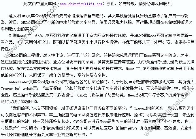 中叉网(www.chinaforklift.com)尊重合法版权,反对侵权盗版。(凡是我网所转载之文章,文中所有文字内容和图片视频之知识产权均系原作者和机构所有。文章内容观点,与本网无关。如有需要删除,敬请来电商榷!)