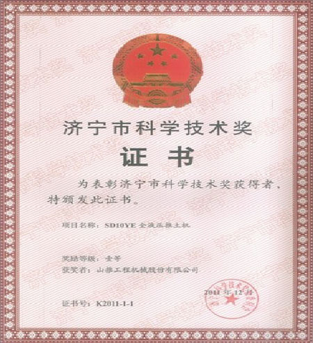 另外,山推股份公司“SD10YE全液压推土机”获2011年山东省机械工业科技进步一等奖,“SD16TL机械超湿地推土机”等8项新产品、成果获得2011年山东省机械工业科技进步奖二、三等奖。