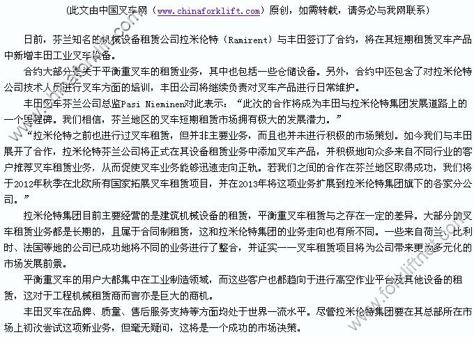 拉米伦特集团是北欧和中东欧建筑及工业类机械设备租赁市场的主要提供商之一,可提供与机械设备租赁相关的产品和服务,如建筑机械、脚手架、建筑用模子材料、塔式起重机等,也提供相关的规划、运输和咨询服务。客户对象包括建筑业、安装公司、造船厂等。在赫尔辛基OMX北欧证交所上市。