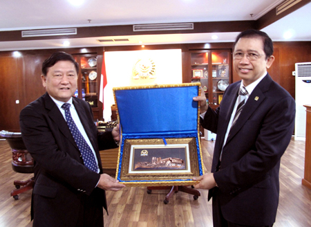 3月19日,柳工集团公司董事长王晓华率欧维姆公司代表团在印度尼西亚首都雅加达拜会了印度尼西亚国会议长马祖基。