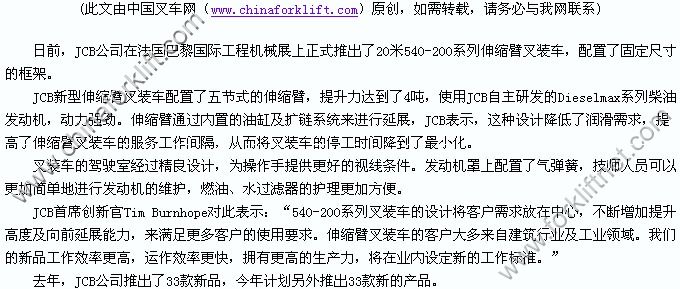 JCB公司推出20米伸缩臂叉装车