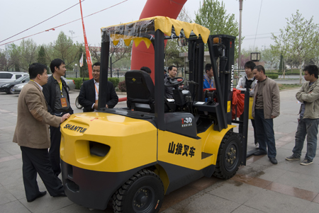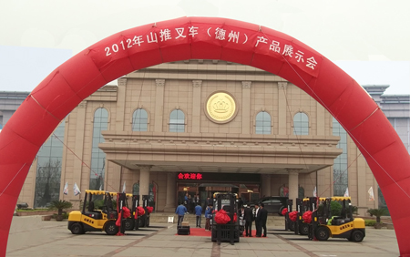 4月21日, “价值超越,倾情回馈” 2012年山推叉车全国系列产品展示会在美丽的“太阳城”德州盛大开幕。山推叉车全新升级外观形象山推黄、山推亮绿产品;SF70、SF100等多款大吨位叉车产品亮相本次产品展示会,其中SF70石材专用车成为本次产品展示会备受瞩目的焦点。