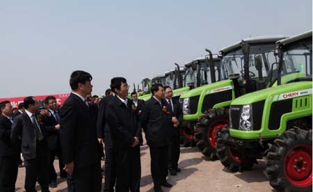 近日,吉林省委副书记、省政协主席巴音朝鲁,吉林省人大常委会党组书记聂文权,吉林省人大常委会副主任王云岫,吉林省副省长王守臣、吉林省政协副主席别胜学、四平市市委书记刘喜杰、四平市市长石国祥等领导在奇瑞重工总经理王金富陪同下观摩了奇瑞农业装备系列产品。