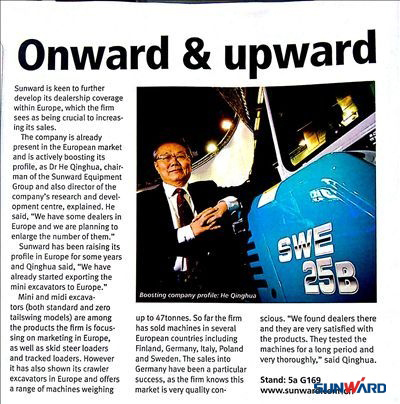 全球三大工程机械展会之一的巴黎国际工程机械展于4月份在法国巴黎北维勒班展览中心举办,山河智能携旗下小型挖掘机、滑移装载机、叉车等众多产品精彩亮相,吸引了国际媒体与客商的广泛关注。山河智能董事长何清华在接受国外媒体采访时表示:“山河智能在欧洲已经建立了基本的代理商体系,今后山河智能将进一步扩大代理商队伍。目前,山河智能的产品已批量出口法国、德国、意大利、波兰、瑞典等欧洲国家。公司在对产品质量要求严苛的德国市场取得成功是意义非凡的。德国的代理商对公司的产品进行了长时间的测试,测试结果令他们十分满意,他们对公司的产品充满了信心。山河智能的小型挖掘机在欧洲已经占有了一定的市场份额。”