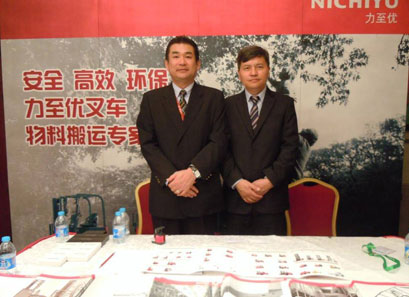 力至优叉车(上海)有限公司销售本部长高田雅章与副本部长翟铜亮在论坛现场