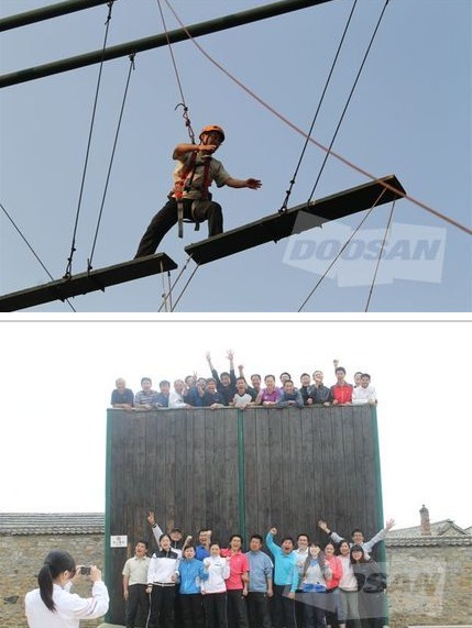 “打造卓越团队”是斗山一直追求的目标之一。为了建立高效协作、积极进取的精英团队,公司每年都会组织熔炼员工意志和团队精神的户外拓展培训。