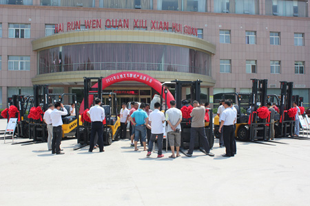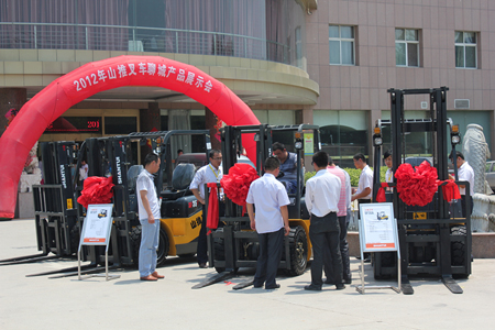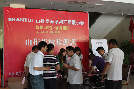 五月的聊城芳菲烂漫,5月19日“价值超越,倾情回馈” 2012山推叉车产品系列展示会耀目登陆江北水城聊城,为聊城地区广大客户送上一场叉车产品的视觉盛宴,完美诠释了山推叉车更强、更灵、更省的优异品质。