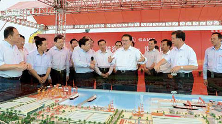5月17日,中共中央政治局常委李长春在中共中央政治局委员、广东省委书记汪洋的陪同下,视察三一海洋重工(珠海)产业园