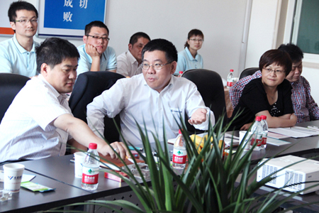 图为曾光安在山西与经销商负责人研讨分析市场情况。
