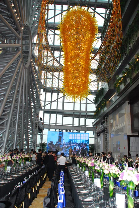 精彩瞬间四:梦回百老汇 礼帽、燕尾服、银色的拐杖、胸前妖娆的红玫瑰,配合上雄浑磁性的音色,精湛潇洒的爵士舞步,刹那间以为是在百老汇舞台深情吟唱他对纽约的种种眷恋。这位倾情演出的表演者是刚才还在台上热情洋溢致欢迎辞的