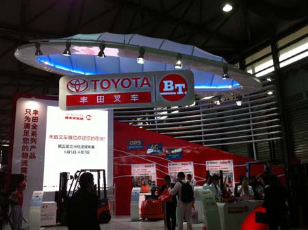 丰田在此次展会上共展示了四款产品,分别为:8FBN四轮电瓶式叉车、8TB50电动牵引车、BT电动托盘车、Z系列四轮内燃平衡重式叉车。