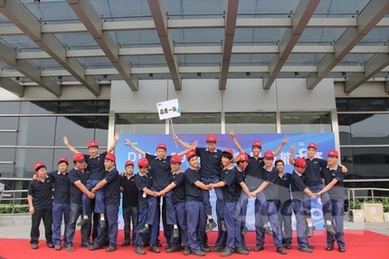 作为闭幕式的结尾环节,总经理尹汝铉先生把此次大赛的最佳成绩团队的旗帜交接给最佳成绩团队班组长,由他们开始,这面旗帜将一届届技能大赛中的最佳技能团队传递下去。