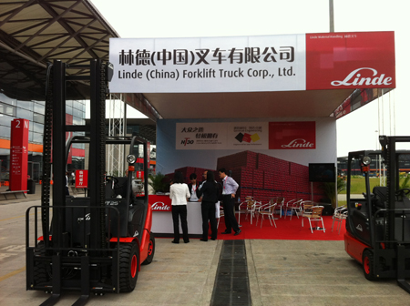 火红的6月林德(中国)闪亮亮相,参加了由德国慕尼黑国际博览集团、慕尼黑展览(上海)有限公司在上海国际博展中心举办的2012亚洲物流双年展(第五届中国国际物流、交通运输及远程信息处理博览会)。 林德(中国)在此次展会上展出了多款经典车型,包括2.5吨液化石油气叉车HT25TS,1.6吨电动叉车E16C和仓储系列的站驾式电动托盘搬运车T20SP。