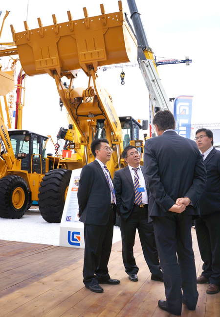 柳工此次共有16台产品设备参展。包括:CLG835、CLG842、 CLG856、CLG888、CLG50CN装载机;CLG920D、CLG925D挖掘机;CLG614H压路机、CLG418II平地机、CLG777A挖掘装载机、CLG365A滑移装载机、HBT80-13-132S拖泵、CPCD25叉车、CPCD30叉车; Dressta TD-10M、TD-14M型推土机等。系列产品都符合俄罗斯市场的二阶段排放。其中部分产品首次亮相俄罗斯市场,新的外形设计吸引了不少客户的眼球。公司展位的规范、全系列产品的展示给参观者留下了深刻的印象,得到了业内人士和客户的一致好评。展会期间,柳工股份公司总裁曾光安、总裁助理兼国际营销事业部总经理罗国兵亲临公司展台,并与多位公司俄罗斯经销商、客户会谈合作事宜。