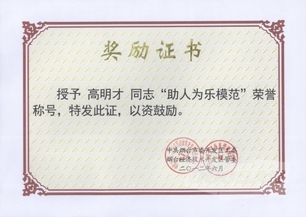 6月16日上午,烟台开发区工委、管委在管委礼堂举行了“全区社会管理创新暨基层基础工作会议”,来自全区社会各界的36名道德模范和40名优秀群众工作者手捧水晶大奖杯赢得现场阵阵掌声,斗山工程机械(中国)有限公司工会高明才主席荣获“助人为乐道德模范”称号,管理部尹青芝课长荣获“优秀群众工作者”称号。