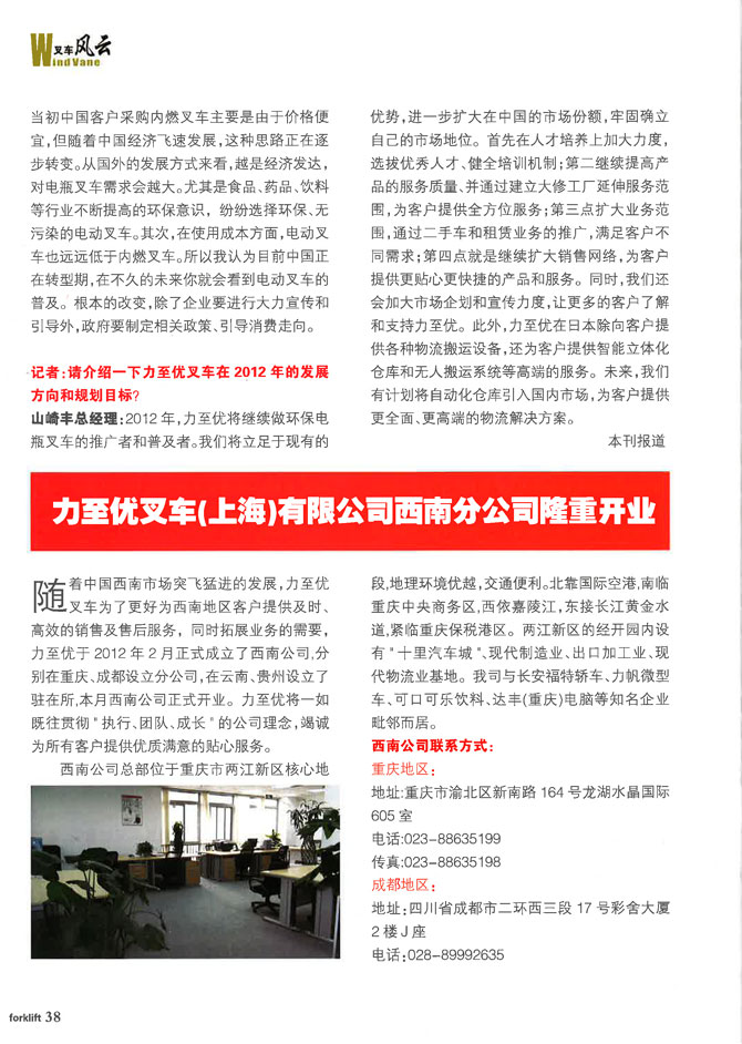 力至优叉车山崎丰总经理接受《工业车辆—叉车》专访